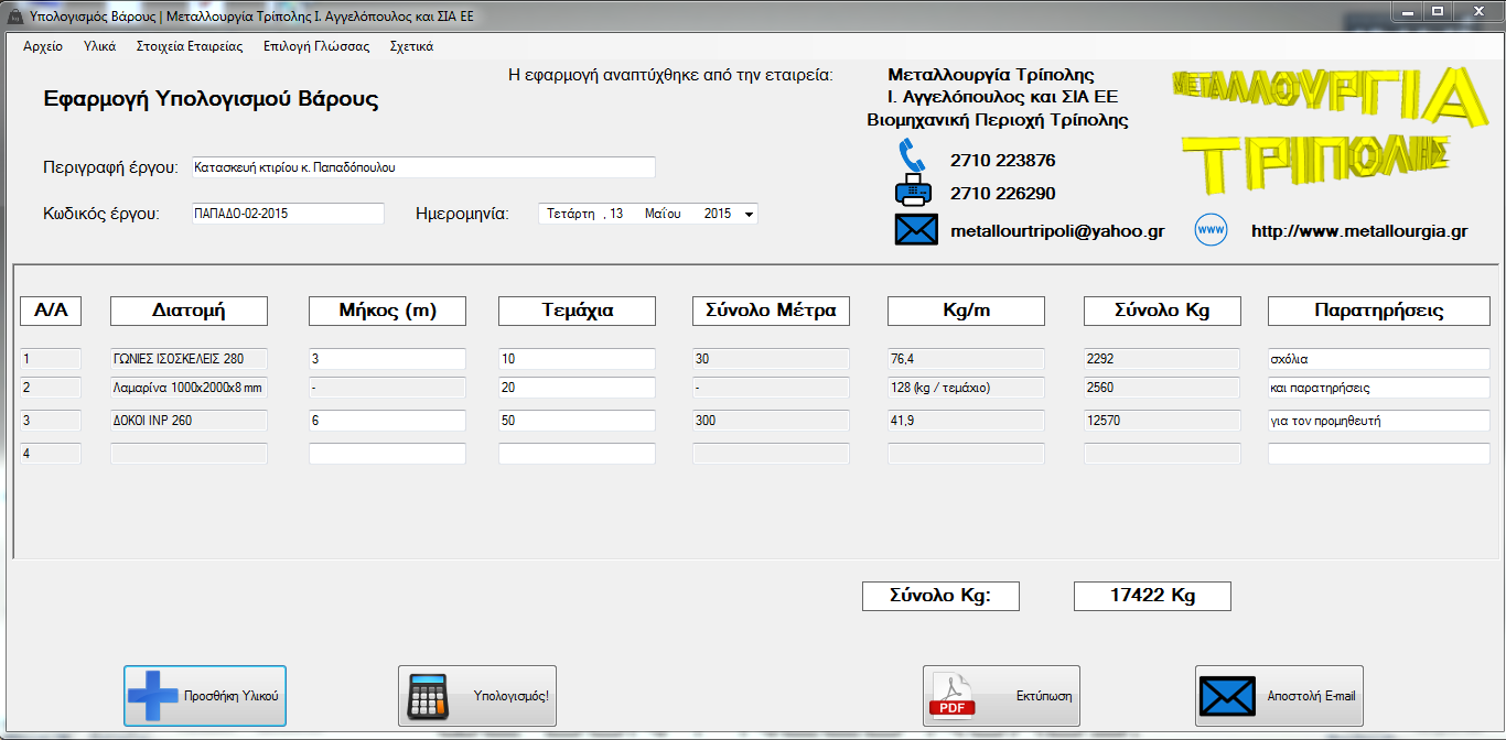 Η εφαρμογή υπολογίζει το βάρος των μεταλλικών κατασκευών Δωρεάν λήψη της εφαρμογής Μερικά screenshots από την εφαρμογή: